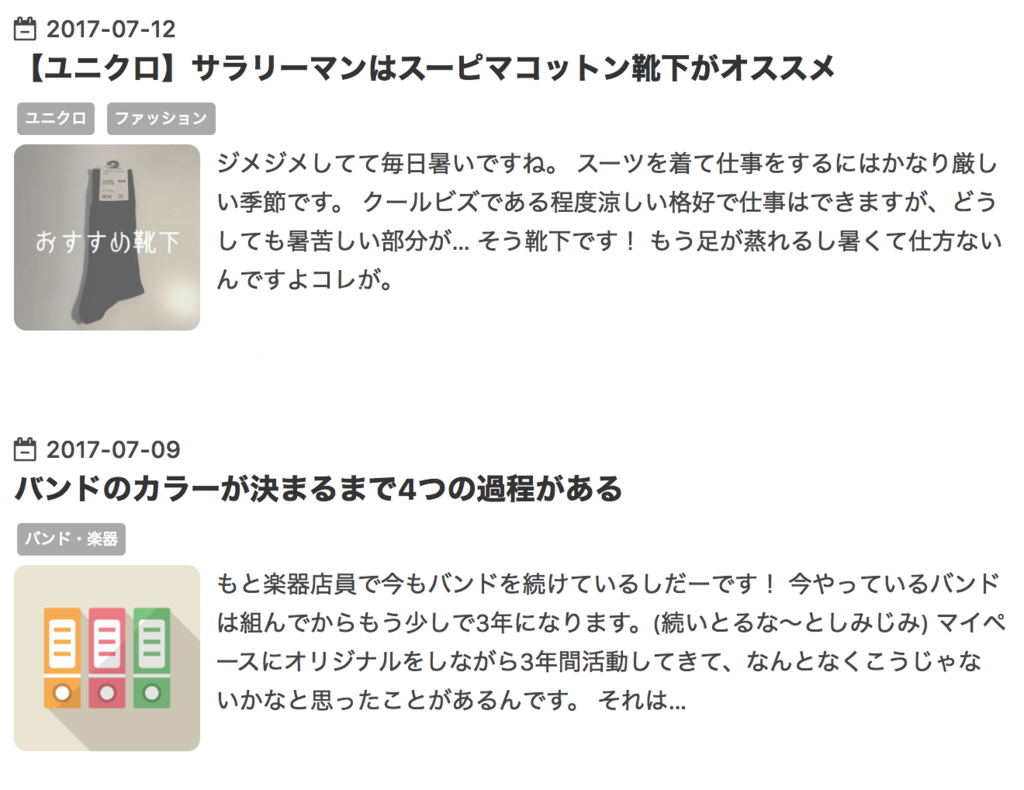 ブログの記事一覧がカード型になっています。